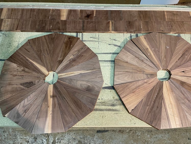 dunkle Wengeholz-Stelen in KunstWerke, Berlin