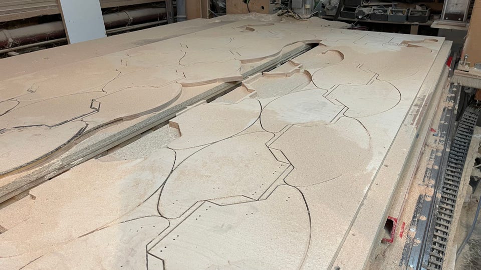 CNC Maschine: 3,6 x 2,1 x 0,7 m.